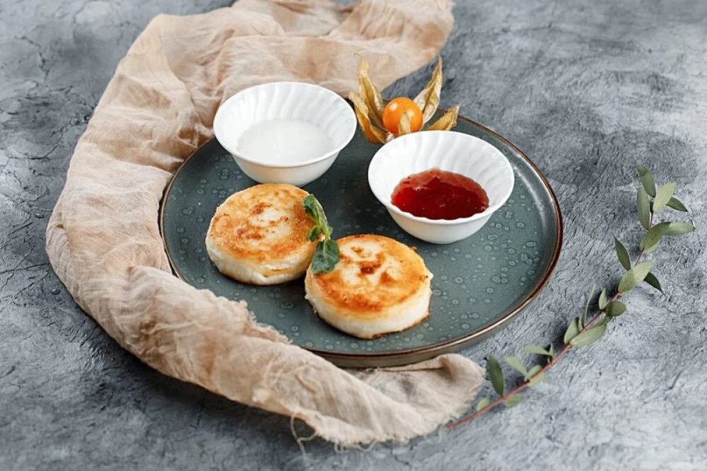 Сырники со сметаной и клуб. вареньем